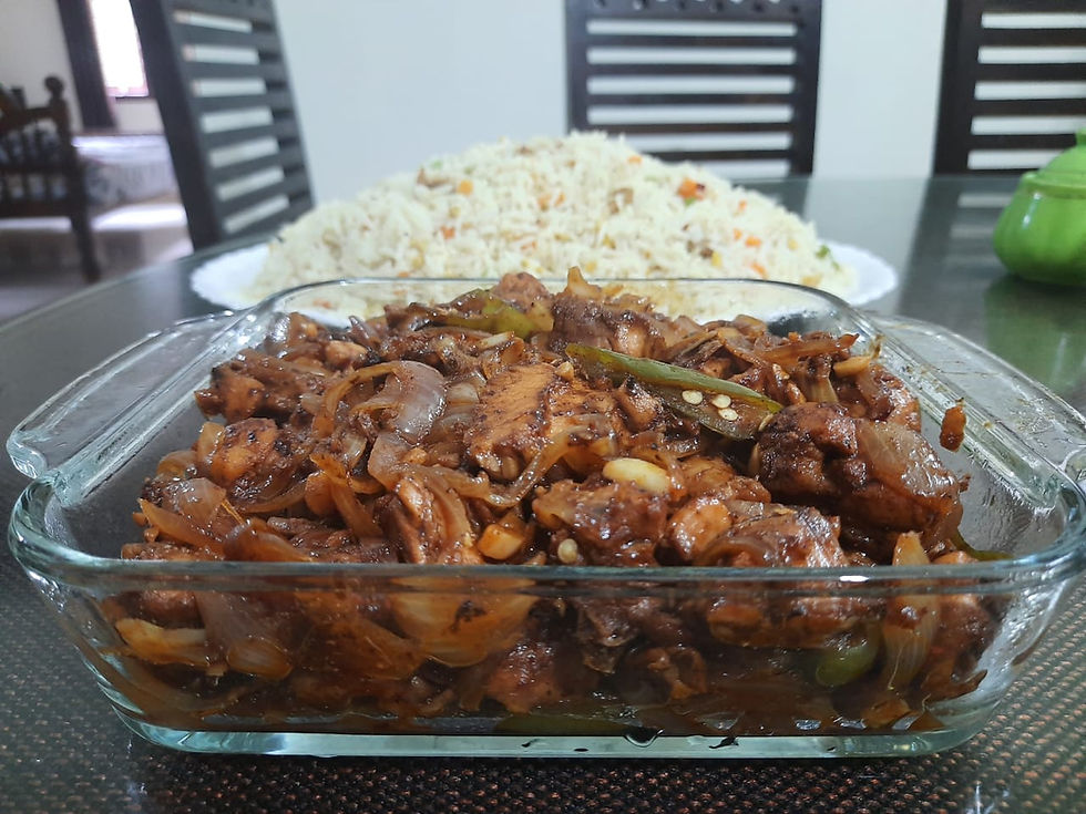 Figure 1: Ghee rice and Chilli chicken; Image credit: Amala Benny